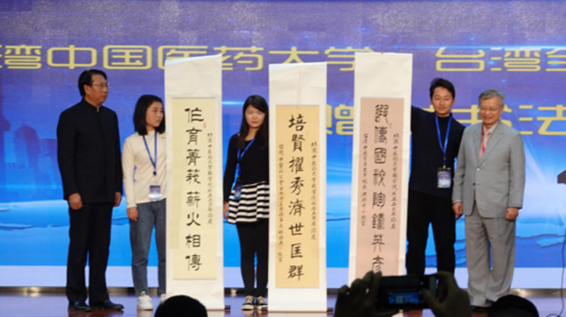 林昭庚教授代表台湾中国医药大学、董事长洪明奇院士和全台中医师公会联合会向WilliamHill中文官网入口赠送书法作品