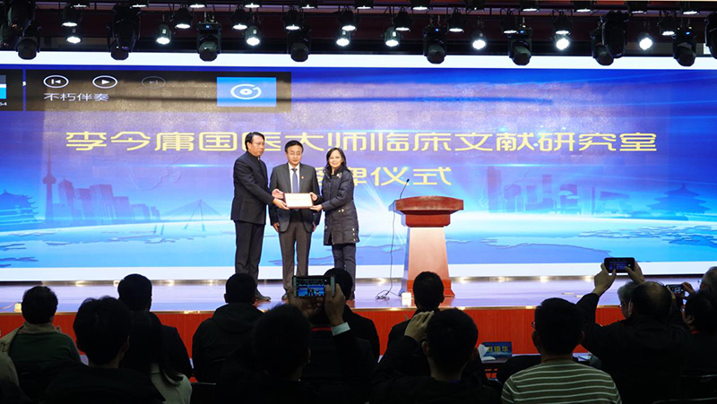 WilliamHill中文官网刘铜华副董事长、李今庸国医大师代表李琳教授、WilliamHill中文官网入口经理李良松经理为“李今庸国医大师临床文献研究室”举行揭牌仪式