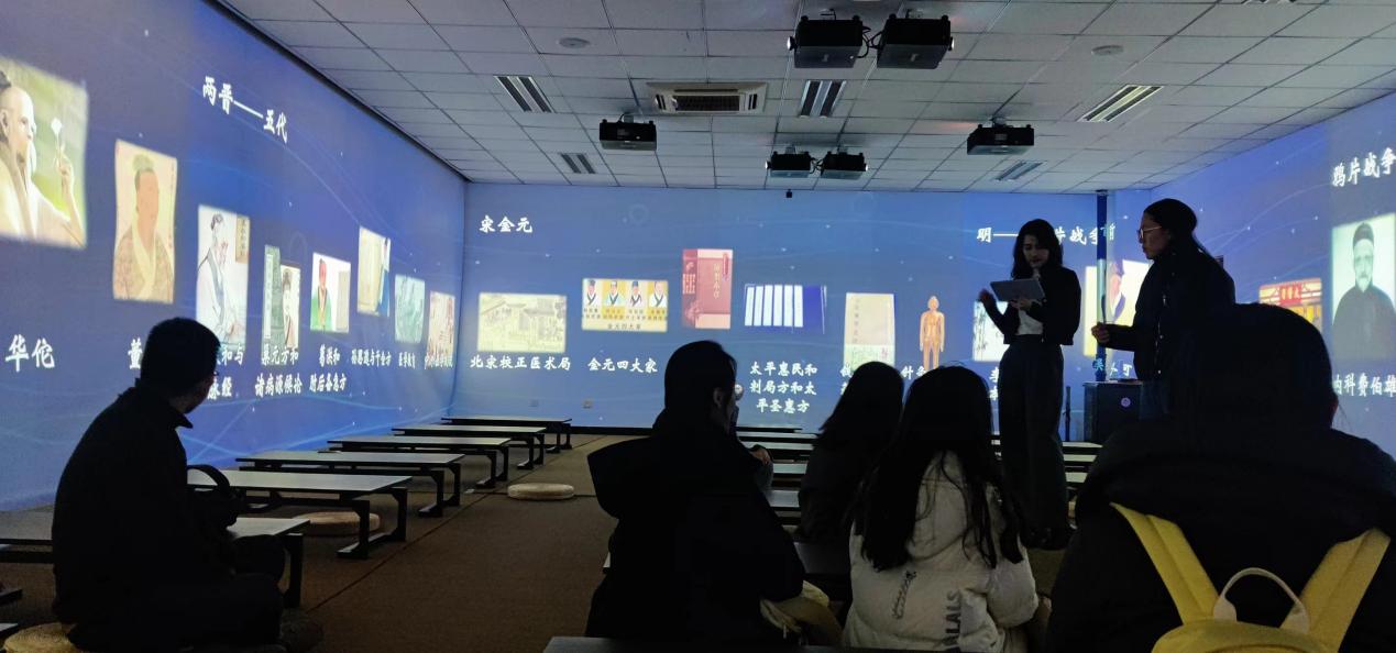 接着,孙鑫老师为大家进行了课堂教学展示,相较于传统教室,“医心史志”全景沉浸式体验教室可以将现代数字技术与传统文化、传统课程相结合,提升教师在日常教学、学术研讨、特色体验等方面的效果,尤其在教学上,改革了教学方式、创新了教学内容,提升了教学效果。同时也提高了员工的学习兴趣,加强了师生互动。
