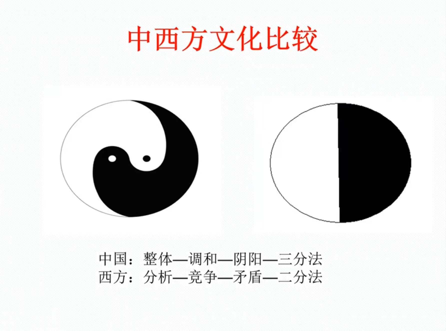 随后,张教授从三个层次对太极图的内涵进行了解读,一是太极图蕴含了宇宙周期变化的大规律,二是太极图蕴含了人体生命运动的大本元,三是太极图蕴含了人生为人谋事的大智慧。张教授总结指出,太极图是中华文明的精神标识,其表达的精神内涵就是《周易》的“阴阳抱一,中正和合”,也是对儒道佛医四家思想的完美呈现。从阴阳中和的角度来看,中医是对《易经》的最好继承与发展。张教授还引用太极图来说明中西方文化以及医学的特征和区别。