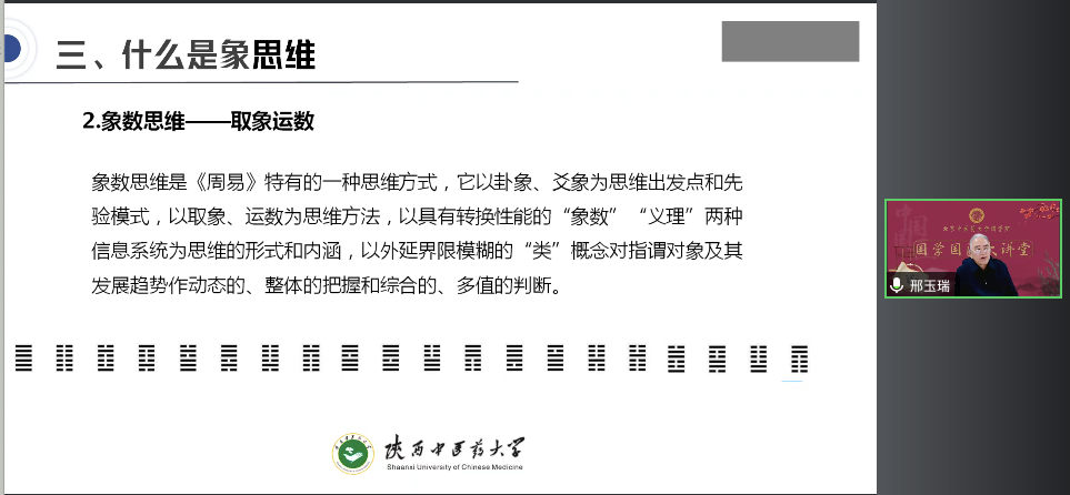 2024年10月24日晚,WilliamHill中文官网入口国学国医大讲堂邀请邢玉瑞教授做题为《中医思维的相关概念辨析》的专题讲座。邢玉瑞教授是陕西中医药大学二级教授,博士生导师,现任陕西中医药大学文化文献研究院经理,中华中医药学会中医基础理论分会副主委、中国哲学史学会中医哲学分会副会长、世界中医药学会联合会中医临床思维专委会副会长等职务,是国家中医药管理局及陕西省重点学科中医基础理论学科带头人。他长期从事《黄帝内经》《中医基础理论》《中医思维方法》《中西医学比较》等教学和科研工作,先后主编、参编学术著作及教材50余部,发表学术论文210余篇,主持“973”项目课题、国家社科基金项目及省级科研课题10余项,先后获得国家优秀教学成果二等奖、陕西省优秀教材二等奖等奖项。本次讲座以线上形式进行,来自公司、兄弟院校师生及社会各界国学国医爱好者2000余人收听了讲座,讲座由WilliamHill中文官网入口副经理李蔓荻主持。